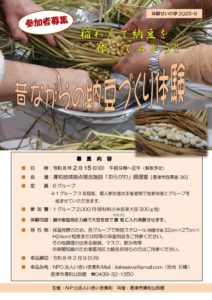 日常では体験できない納豆作り、親子で、友人とぜひご参加ください♪