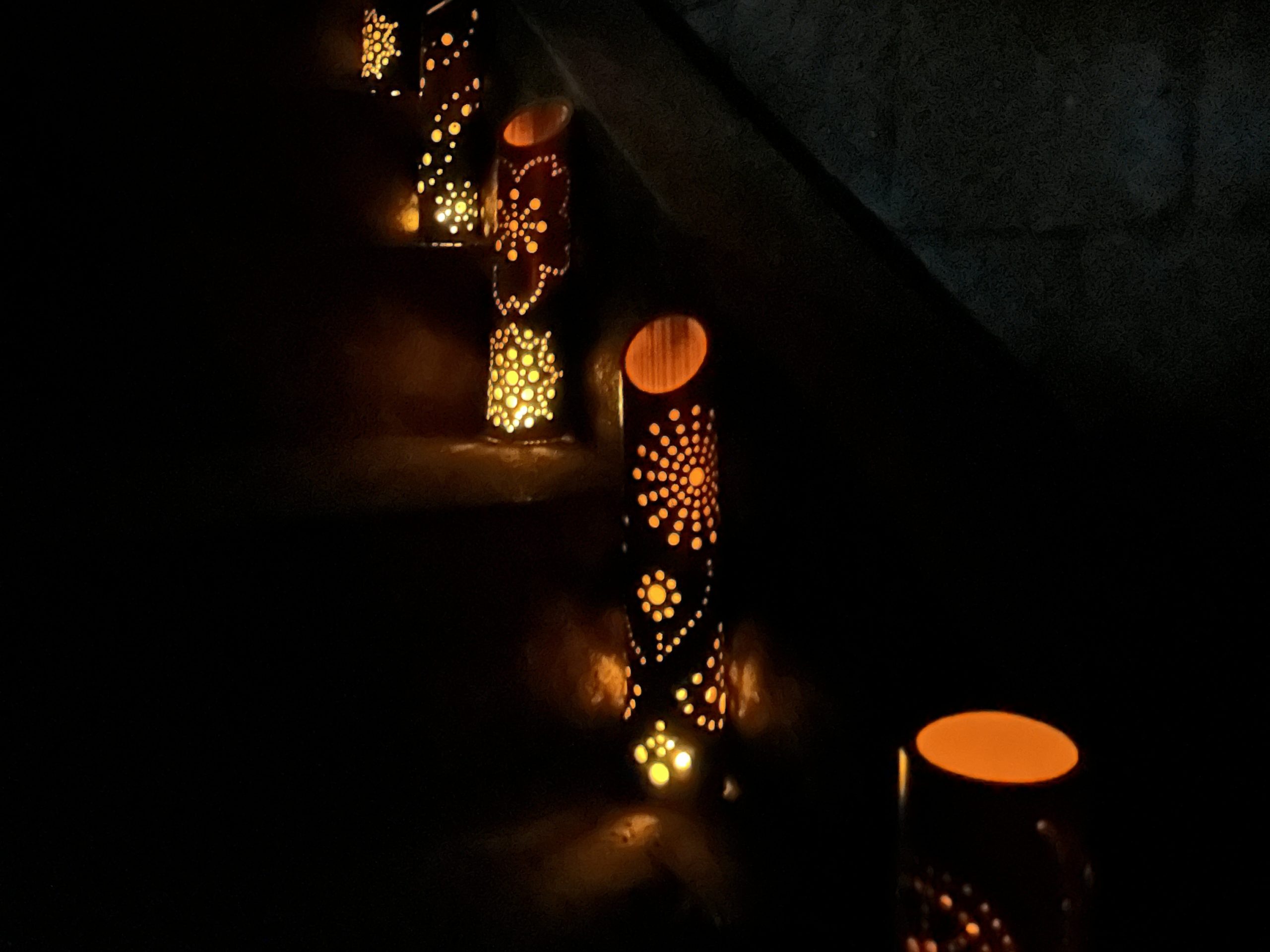 コミュニティ清和が行ってきた竹あかりワークショップ。今年最後に三島神社でその灯りを灯します。ワークショップで参加者の皆様が込めた想いとともに、三島神社の夜を彩ります。